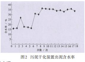 由圖 2 可見,污泥干化裝置出泥含水率平均29.0%,達到了設計目標 40% 以下的預期,滿足生產(chǎn)需要。